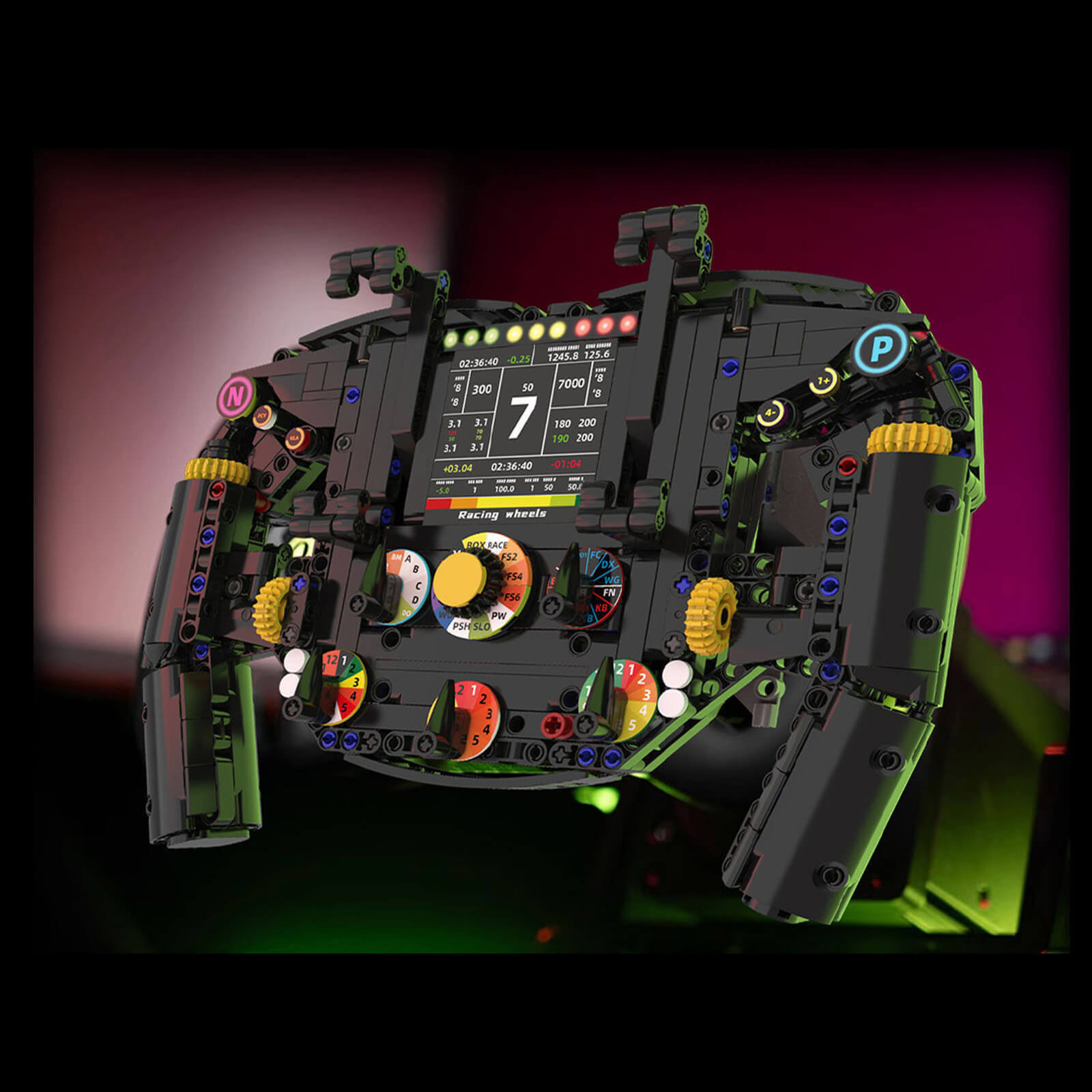 Built from over 800 pieces, this model replicates the intricate layout of a true F1 steering wheel complete with neutral gear button, pit lane limiter and a full suite of controls including engine maps, ERS settings, PU controls, differential wheels, engine braking wheel and state of charge selector.