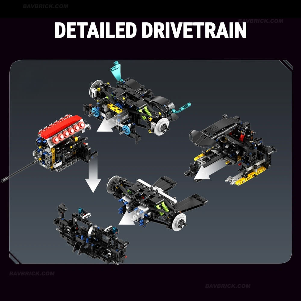 At its core sits a functioning V12 engine with rotating pistons, paired with a working gearbox, fully developed drivetrain, and an independent suspension system with springs. Every mechanical element is designed for realism, motion and structural authenticity, reflecting the complexity of real-world endurance prototypes.