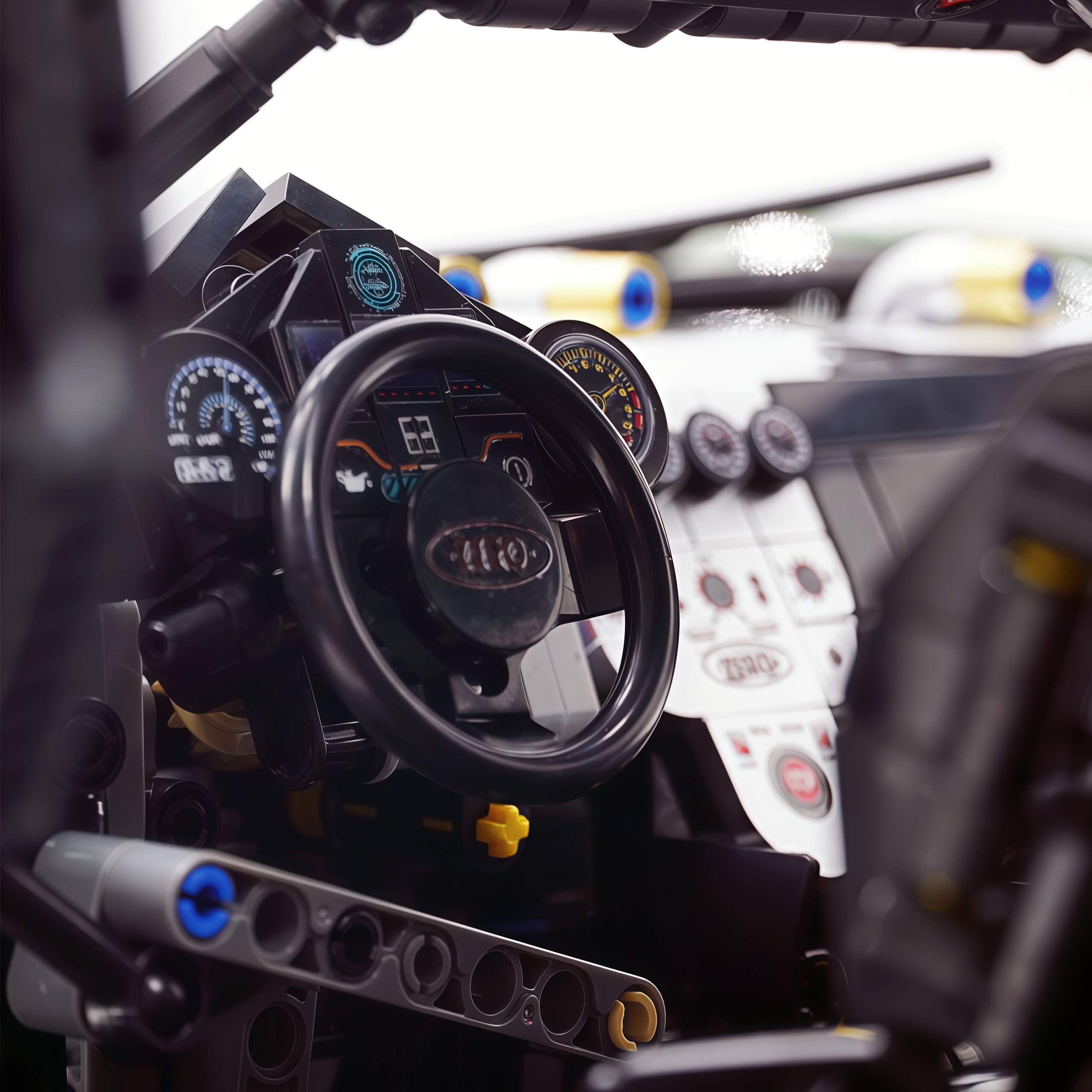 The stance is completed by custom wheels, low-profile rubber tyres, and a massive rear diffuser, while adjustable ride height allows you to fine-tune the car’s posture to match your display vision. Front and rear LED lights bring the model to life, day or night.